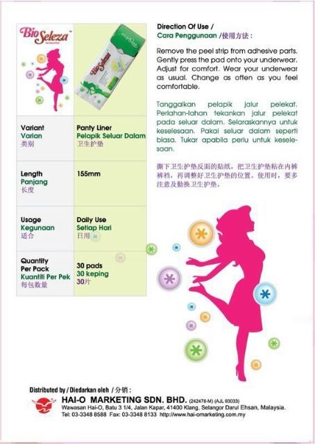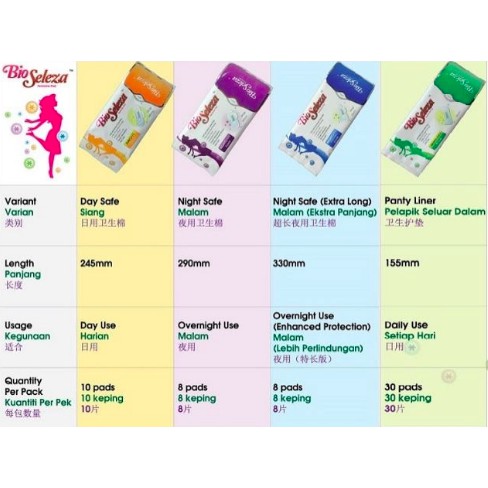 Bukan kerana ada apa-apa masalah tetapi dengan memakai pantyliner menjadikan wanita terutamanya yang bekerja lebih selesa dan yang penting yakin untuk. - Tidak megandungi florensen selamat digunakan. 30 keping pantyliner setiap pek 2 Bio Seleza Feminine Pad Day Safe x 2 pek 10 keping setiap pad 3 Bio Seleza Feminine Pad Night Safe x 1 pek 8 keping.