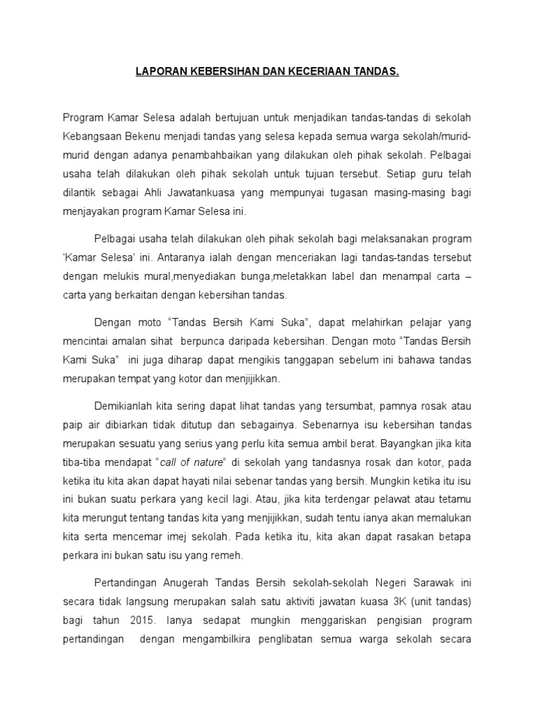 Doc Laporan Kebersihan Tandas Sygku Ezati Academia Edu